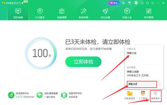 2、在打開(kāi)的界面,搜索框里輸入【彈窗過(guò)濾】。